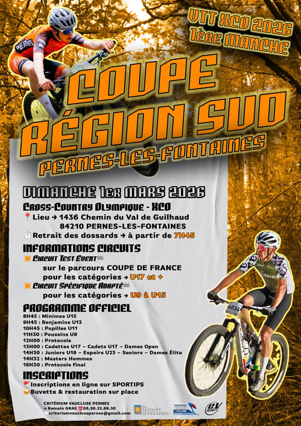 Attention, ce choix sera effectif pour l’ensemble des coupes XCO Région Sud de la saison 2026.